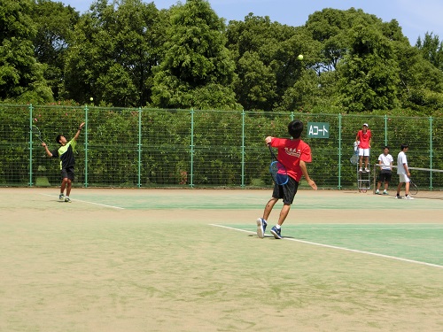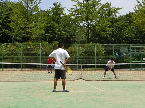 1年生の初心者はストロークやサーブに難がありましたが、「テニスのルールと試合の進行を知る」という目標で試合を行いました。一方、2,3年生と1年の経験者は、本番さながらのマッチ練習を行いました。特に、今週末に高校総体に出場する選手は基本の確認、また積極的なネットプレーを意識した動きが見られました。途中、熊本高校の選手と練習試合を行うことができ、有意義な練習となりました。
