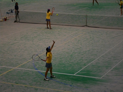 パークドームで試合が行われた女子のダブルスは、1年生の粘り強いプレーが光りました。初心者の者も一生懸命にボールを追うひたむきなプレーが見られ、また安定したストロークや丁寧なボレーが随所に見られ、勝ち進みました。自信をつけたようです。