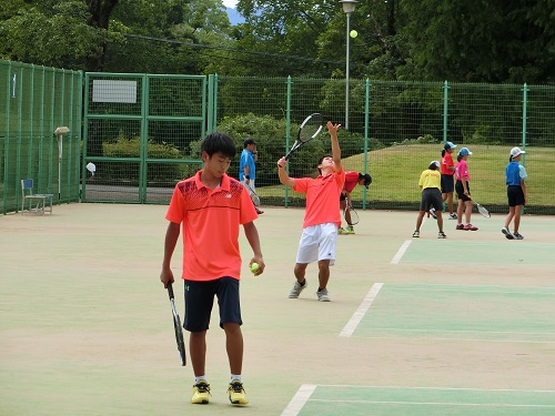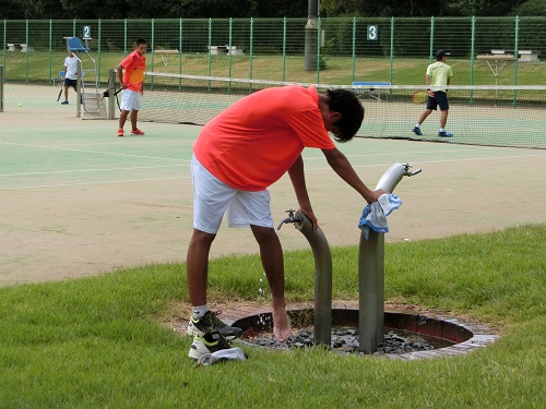22日は12~17時まで学園大学付属高校と高森高校の3校で練習試合を行いました。連日の猛暑でコート上は40℃を超えるような暑さです。体力がある前半にシングルスを中心に、そして後半にダブルスを入れて練習試合を行いました。