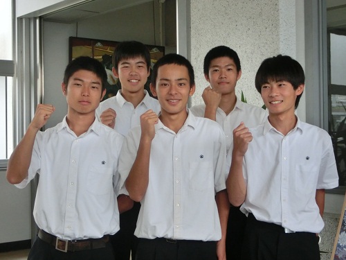 8月1日から始まる近畿インターハイに出場する5人が、今日熊本駅から大阪へ出発しました。出発前には職員室へ出向いて先生方に挨拶を行い、インターハイでの検討を誓いました。先生方から「頑張れ!」と一言激励していただき、引き締まった表情で職員室を後にしました。