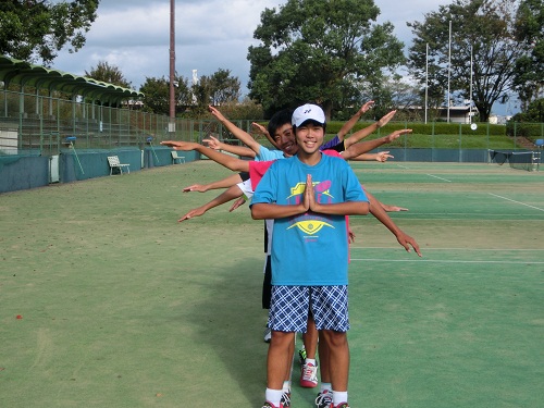 練習後に団体メンバー紹介の写真を撮りました。ユニークな第二高校テニス部です。応援よろしくお願いします。