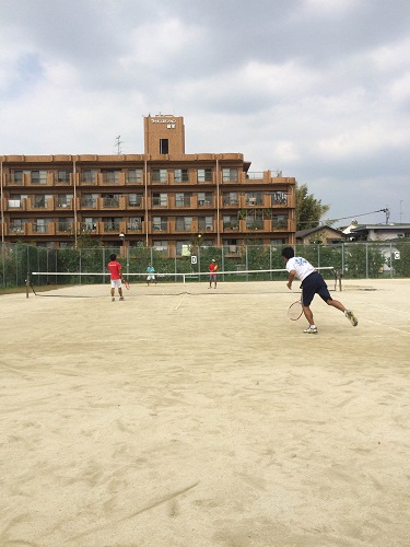 練習試合ははじめに団体戦を行い、その後個人戦のシングルス、ダブルスを行い、16:00までみっちり汗を流しました。団体戦では勝利したものの個人戦は分が悪く、反省点ばかりが目に付きました。