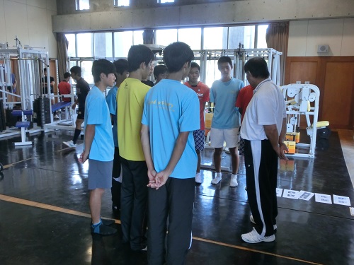 トレーナーの説明を聴く選手たち