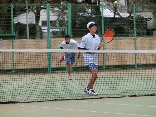 Aクラスに出場した4組はサーブやストロークの力強さが見られ、冬場の筋トレの効果が表れたようです。