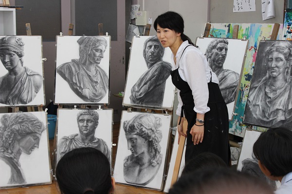 1学期最後の2年美術科の授業は石膏デッサン講評でした。みんな上達し、良い方向に向かっているように感じます。夏休みもバリバリ描いて、勢いをつけてほしいものです。頑張れ!
