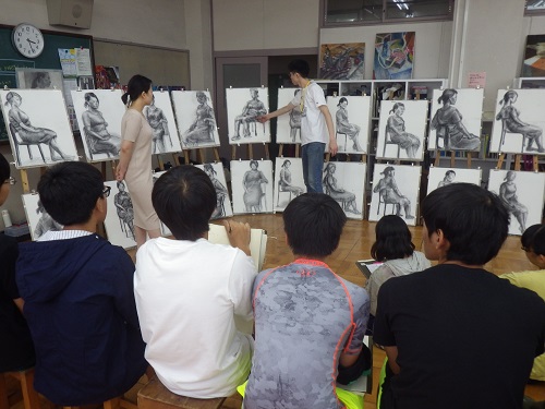 7月31日から8月10日まで、第二高校美術科卒業生が実技講習に帰ってきてくれます。1年生は基礎科、2年生以上は油彩画科、日本画科、デザイン科、彫刻科に分かれて指導を受けます。このゼミで生徒たちは大きく力をつけます。