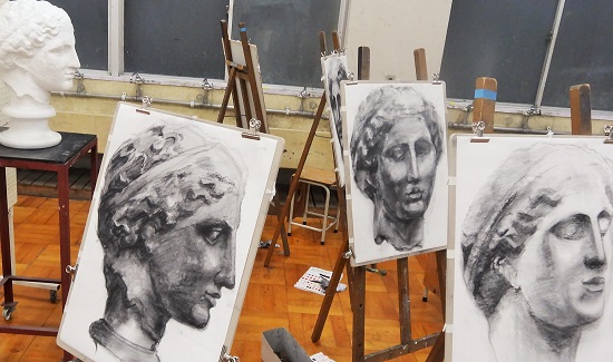 入学後、T字ブロックや石膏像・ラボルトのデッサンに取り組んできました。