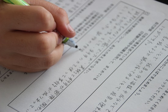みんなで発表会をしました。最初はみんなの前でお話しするのを恥ずかしがっていたお子さんも高校生のお姉さん、お兄さんと一緒なら、元気に発表できました。