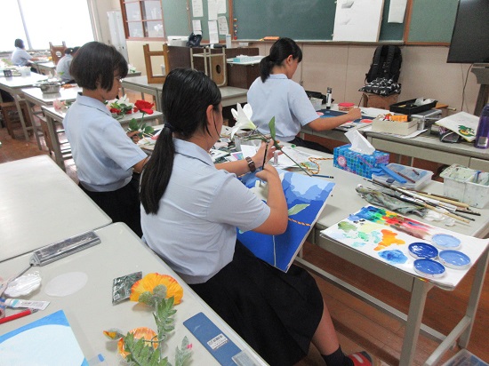 夏休みもあと少し、美術科2年生は高校美術展に向けての作品制作に没頭しています。実りの秋になることを祈っています。