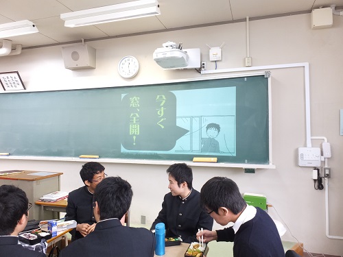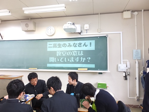 授業中は、ちょっと寒いかもしれませんが、四隅の窓を開けましょう。