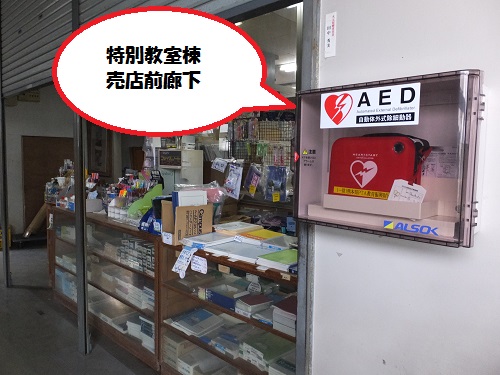 体育館1階 剣道場横通路(いつでも取り出せます)