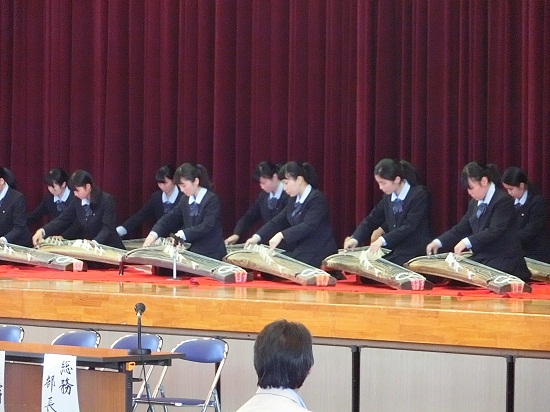 4月25日(土)、本校体育館にてPTA総会が開催されました。出席率は、1年81.7%、2年68.8%、3年74.7%、全体では75.1%となり、保護者の方々のPTA活動に対する意識の高さがうかがわれます。会場にはSSHの研究ポスターや美術科の作品が展示され、筝楽部による演奏も行われました。総会後には学級懇談会、学年別クラス役員会も行われました。