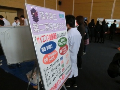 北九州国際会議場にて、九州工業大学主催による「PBL合同成果発表会」(九州P-1グランプリ、九州コドモ工業大学)が開催され、本校理科部の生徒(物理部、化学部、生物部、地学部)と理数科の希望者が参加してきました。小中学生向けのサイエンス講座や研究成果のポスター発表を行い、プレゼンテーション能力を高めるとともに、子どもたちと一緒に科学を楽しむことができました。また展示部門において最優秀賞グランプリを獲得することができました。