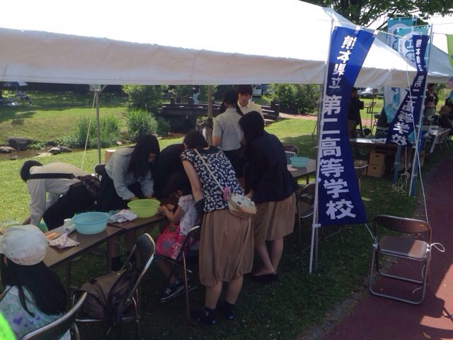 みなも祭り2015にて、科学系部活動のみなさんが、子どもたち向けに、わくわく科学教室を行いました。熊本県広報部長のあの人も参加してくれました。