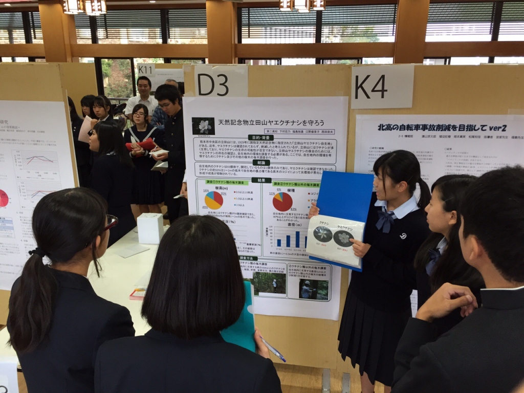 第2回SSH指定校合同課題研究発表会が崇城大学にて行われました。熊本県内のSSH指定校(熊本北、宇土、第二)が集まり、それぞれの研究をポスター発表。約40テーマ、のべ150人の生徒が発表し交流を深めました。とても有意義な時間になりました。