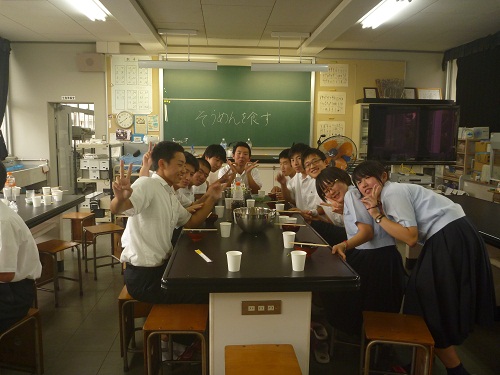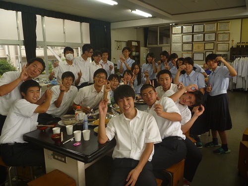 1学期の最終日の午後に、生物部では「3年生の受験を応援する会」を行いました。部活動を引退して、受験に向かう3年生8人を激励する会です。昼食は1,2年生が準備したそうめんを食べ、受験勉強のストレスを忘れる一時を過ごすことができました。