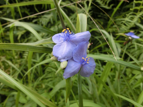 梅雨に映えるアジサイも旬を過ぎたのか、すっかり色も移りあせてしまいました。元気がいいのは濃紫色のムラサキツユクサだけです。梅雨の晴れ間に鮮やかな濃紫が映えます。