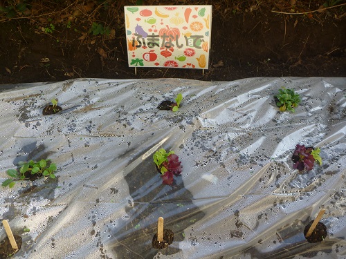 先日、生物部1年生で、低温と乾燥対策のためにビニールシートを張りました。これで冬の寒さにも耐え、元気に育ってくれると思います。