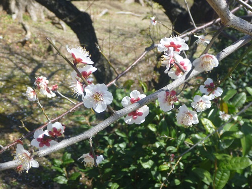 週末の雨で校庭のウメの花がずいぶん開きました。満開までもう少しのウメもあります。その様子は、また次回お伝えしたいと思います。