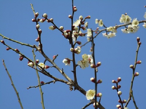 校内を散策すると春の訪れを感じます。これから見頃を迎えるのは、校庭の南側のウメです。三分咲きといったところでしょうか。来週は気温もグッと上がり、春の陽気となるらしいので、一気に満開を迎えることでしょう。