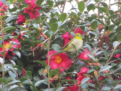 サザンカに止まるメジロ