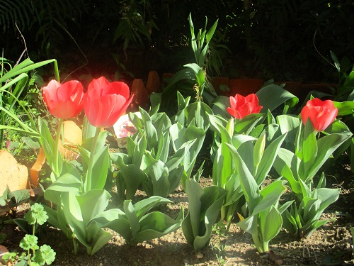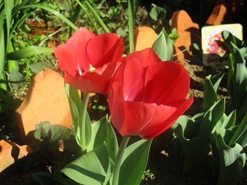 春休みに入り、毎日20℃を超す陽気です。春というよりも初夏といった感じです。生物室前の花壇にチューリップの花が咲きました。幼い頃、『咲いた~ 咲いた~ チューリップに花が~』と歌った記憶がありませんか。