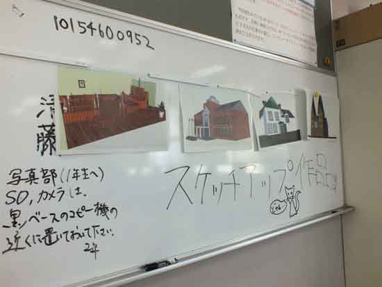 今年度文化祭のコンピュータ同好会の展示にお越しいただいた方々にお礼申し上げます。コンピュータに関係するものならば、活動内容は基本的に制限しないコンピュータ同好会。今回の展示内容は、自作ゲーム体験、SketchUpによる3DCG体験及び展示の2つ。DTMにも手を出しているのでギターが展示してあったりしましたが、そこはご愛嬌ということで。来年度は自作音楽の発表と本校校舎の3DCG展示を目論んでおります。乞うご期待!