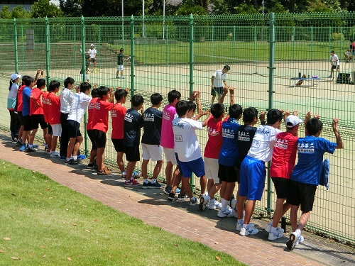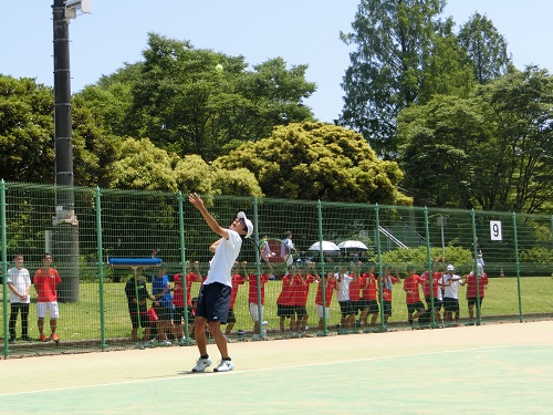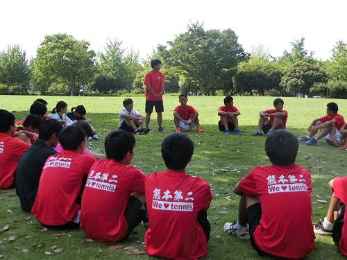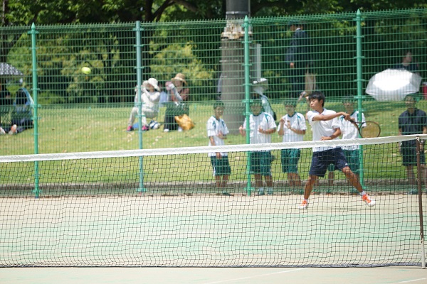 第二高校テニス部の1,2年生は、インカレ出場の掛林先輩、国体選手となった木村先輩と、テニス部OBの先輩から自信と元気を与えてもらっています。先輩たちを目標にこれからも「強いテニス」を追求して練習に励みます。
