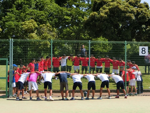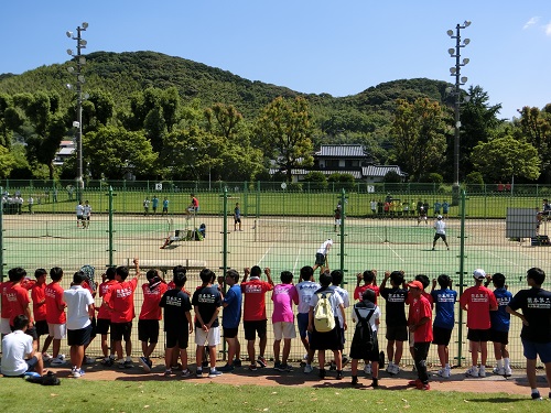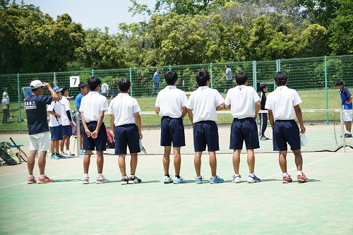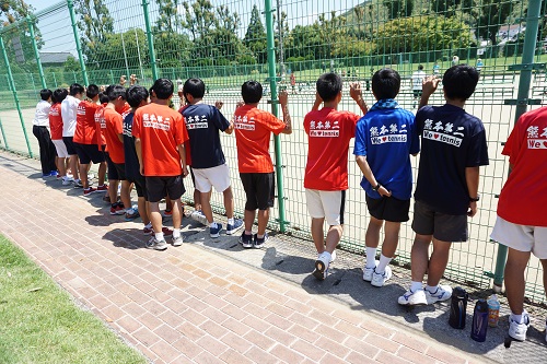 試合後には、引退する3年生から一言ずつメッセージが後輩へ伝えられました。高校総体に出場できない3年生も多くいましたが、3年生も精一杯声を出して選手に声援を送りました。3年生はこれからラケットを鉛筆に持ち替えて、大学受験に挑戦です。9カ月後の合格を後輩一同応援します。