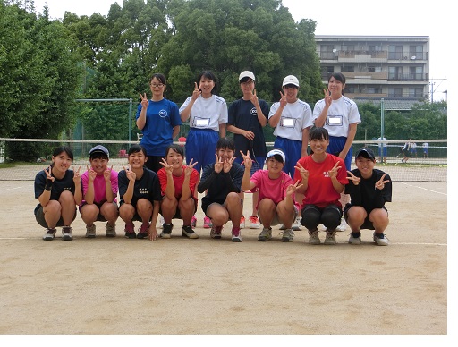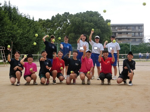 第二高校テニス部女子は、現在1年生7人、2年生9人で、練習に励んでいます。3年生が引退した後、新チームとなり、16人で仲良く練習に参加しています。