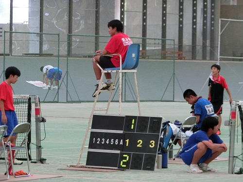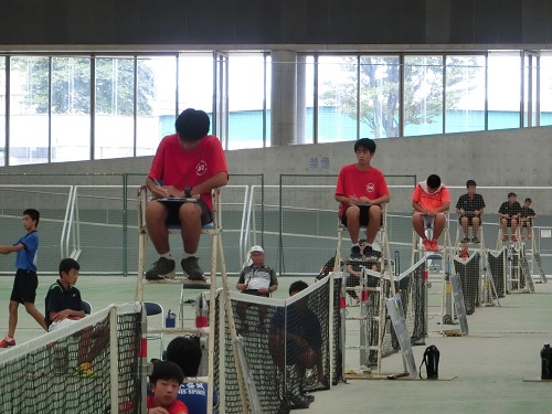 夏休み初日の21日は審判補助員として、中体連のテニス競技県大会に参加しました。部員の後輩となる中学生も多数参加していたため、観戦にも熱が入っていました。中学生が気持ちよくプレーできるように堂々とジャッジをしました。