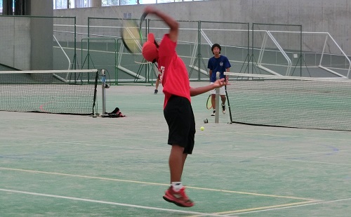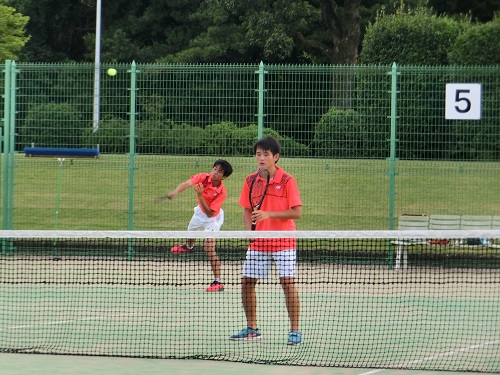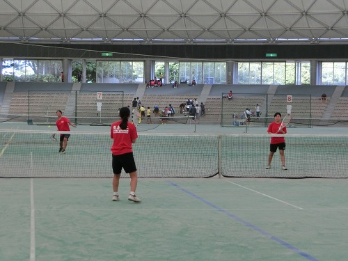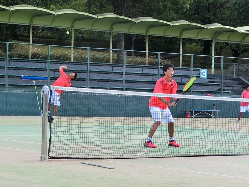 夏季大会出場選手は前半シングルスの試合を行いました。
