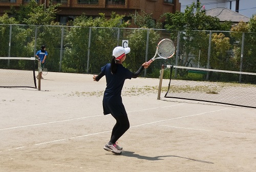 試合を重ねるごとにプレーの精度が低下し、明らかに体力不足を露呈しました。夏季大会に向けて、体力をつけることは最重要課題です。また、試合経験不足からか、ダブルスの動きの悪さが目立ちました。1週間後から夏休みからとなりますが、体力をつけることと、ダブルスのネットプレーが夏の課題です。課題克服のために練習を工夫します。
