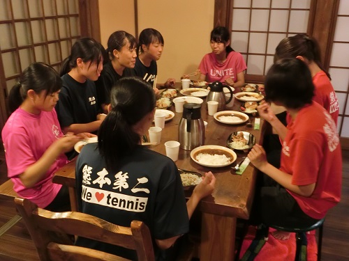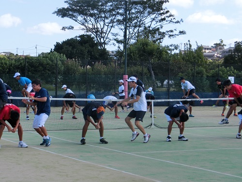 8月25,26日は、エコパーク水俣テニスコートで男女合同の夏合宿を行いました。気温35℃の残暑が厳しい中での合宿でしたが、時折吹く海風が暑さを和らげてくれました。
