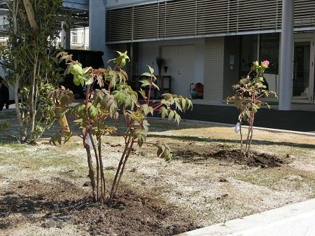 生物室前の花壇に植えたボタン