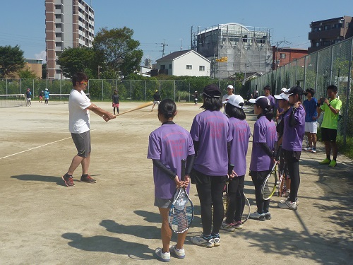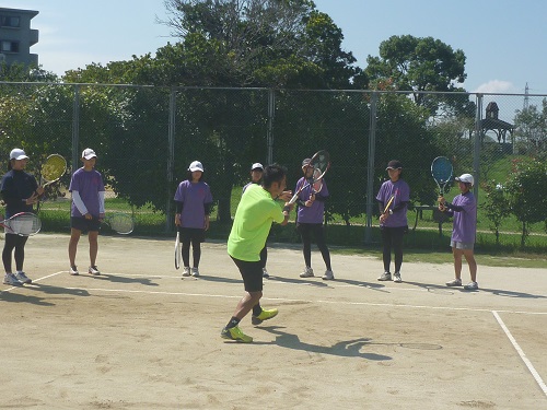 10月2日、夏を思い出させるような蒸し暑い中、箱島正隆選手のレッスンを受けました。これは、被災地の高校生を元気づけようと、箱島選手がボランティアでテニス教室を開かれました。先週は雨が多くて練習不足の女テニでしたが、選抜予選を前に中身の濃いテニスの時間を過ごすことができました。