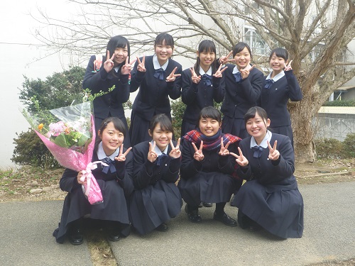 53期のテニス部女子は9人、初心者やテニス経験が少ない者ばかりでしたが、入学以来、仲良く練習に励んできました。一昨年の秋はノーシードから勝ち上がり、九州大会に出場することができました。個人の力よりもチームワークの勝利でした。まさに『ミラクル第二』です。