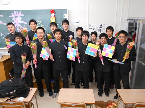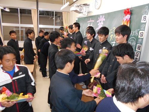 3月1日、第二高校第53回卒業式が行われました。テニス部の先輩方19人も笑顔でそして元気に卒業されました。午後からの卒業式でしたが、春らしい暖かい日差しに包まれ、先輩方の門出を祝うような天気でした。