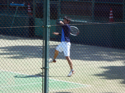 掛林先輩は3回戦で第5シードと対戦し、4-7のマッチポイントを取られましたが、驚異の粘りで逆転し、9-7で準々決勝に進みました。準々決勝では高校時代からのライバルとの対戦でしたが、一進一退の接戦の末、逆転勝ちで準決勝に進出しました。試合公終盤では、痙攣によりプレーの続行が心配されましたが、気力で勝利をものにしました。思わず3年前の高校総体の個人戦を思わせる試合展開でした。