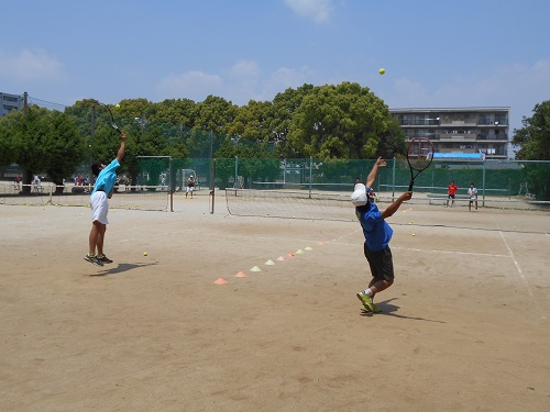 25日に全国選抜高校テニスの決勝戦を観戦して、意識が変わったようです。これまで試合では先にミスをして相手にポイントを与えるといったゲーム展開が目立ちました。練習の中心はストロークです。ミスをしないように基本練習を繰り返します。