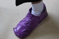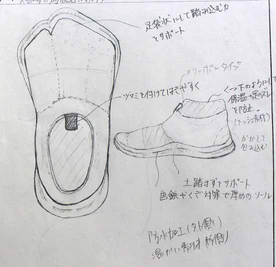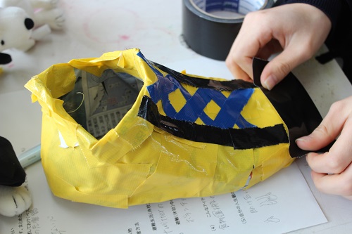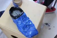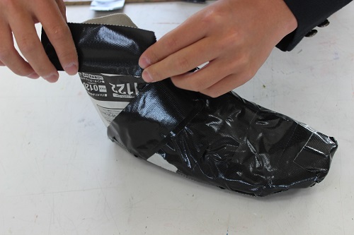 そこで、今回用意しました課題は新聞紙の靴です。「簡単、温かい、どこにでもある、退屈しのぎになる、なんとなく笑える」の手探りですが可能性を感じる課題です。