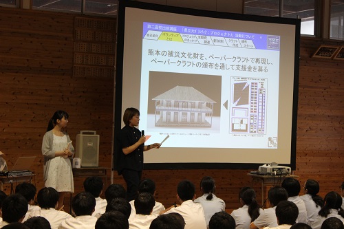 今の2年生は昨年入学したての4月、新入生宿泊研修のホテルで熊本地震の前震は起きました。家族との安否をとり不安な気持ちで、家に帰りました。高校生活のスタートが震災から始まったわけですが、およそ2年が経つ今、そろそろ振り返ってもいいかと思いこの課題をはじめました。