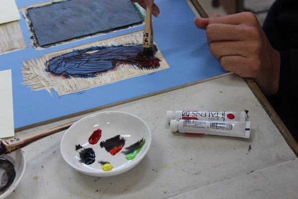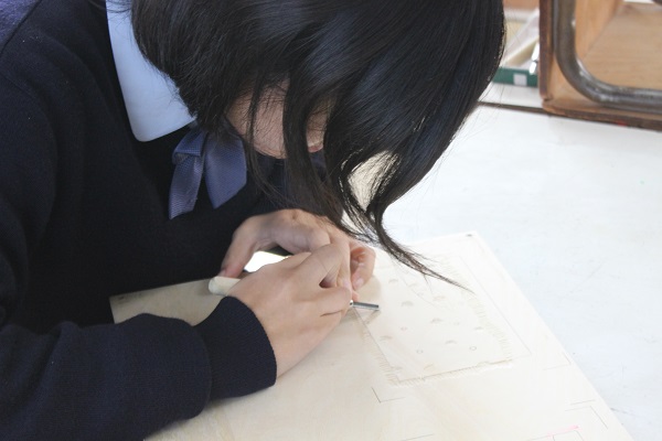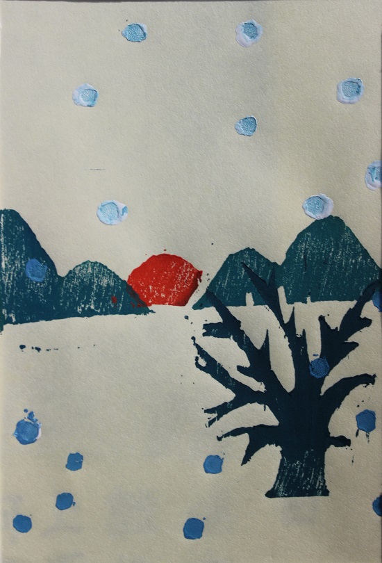 普通科美術選択では2学期、多色木版を制作しました。テーマは漢詩です。