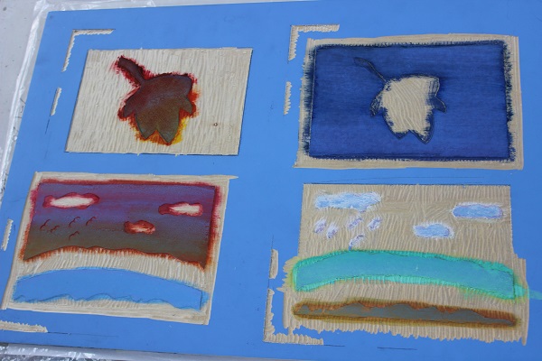 北斎までは行きませんが、多色木版です。版画は彫るまでが大変なのですが、実は摺りにこだわると本当に楽しさが広がります。かなり時間をかけて制作したので、良い作品がたくさんできそうです。