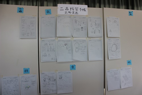 普通科美術Ⅱ選択で取り組んでいるデザイン課題「二高防災手帳」、学習のハイライト「防災グッズの模型」が完成しています。学年末テスト後、プレゼンテーションをします。