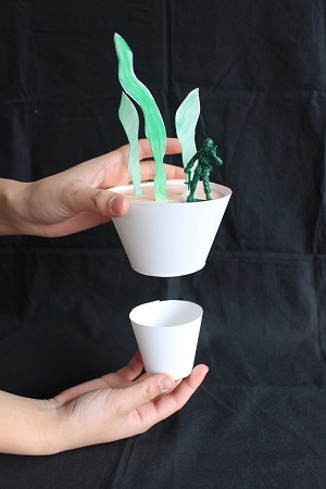 地震後、なかなか新鮮な野菜が食べられなかった経験から、すぐ育つ野菜をかわいいパッケージで保管しておき、必要な時にすぐに育てられるようにするアイデアです。パッケージは折りたためるので、自治体等で大量に保管も可能です。