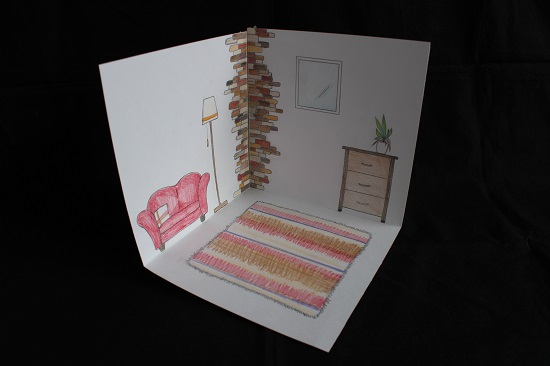↑地震で壁紙がはがれたり、ヒビが入りやすい部分のカバーのデザイン。コーナーのレンガ風の装飾部分です。ヒビや破損個所は放置しておくと静かに人の心を傷つけているものです。美しいものを見るとほっとするのも同様で、見るということと人の心はとても近いと感じます。