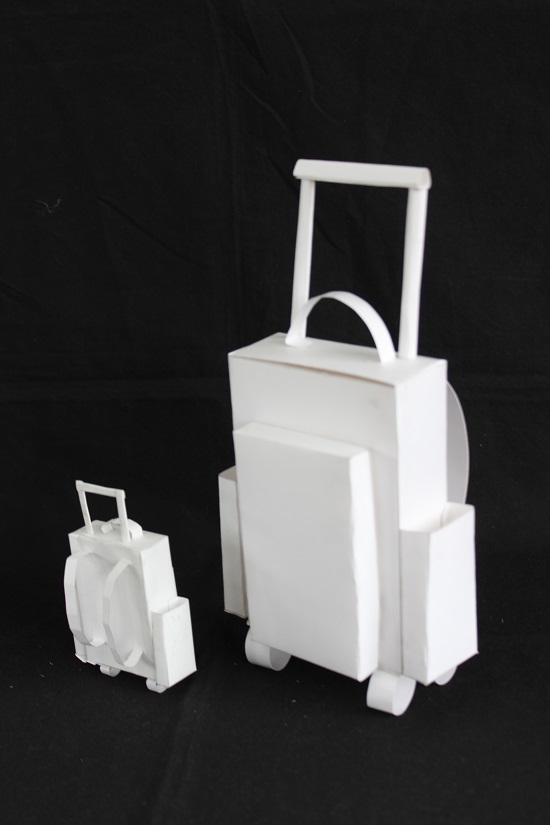 ↑避難用キャリーバッグ。模型をつくるための模型もいい出来でしたので、一緒に撮影、親子バッグになりました。