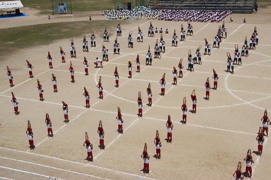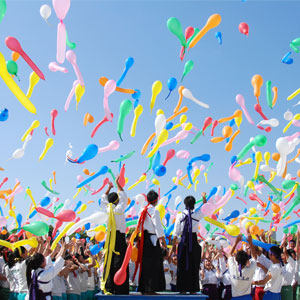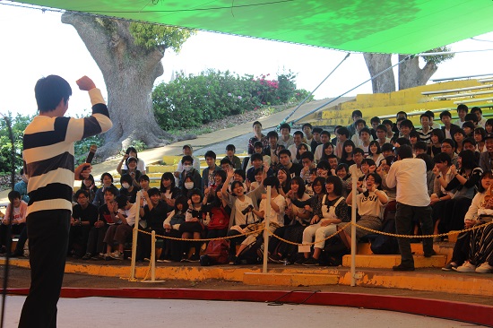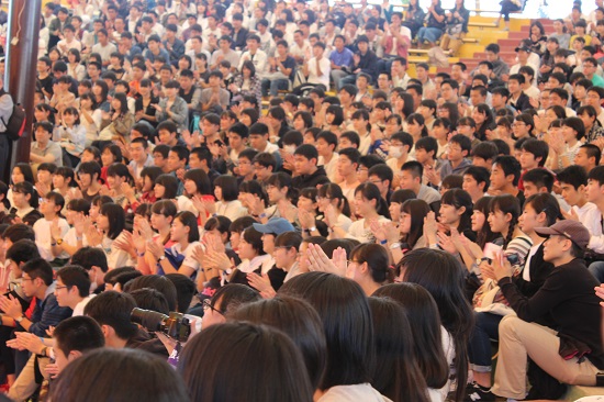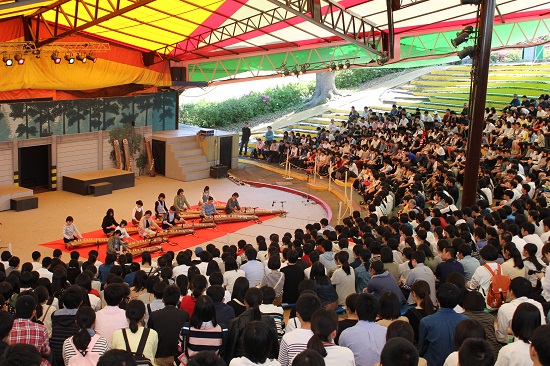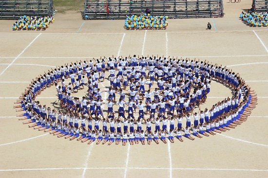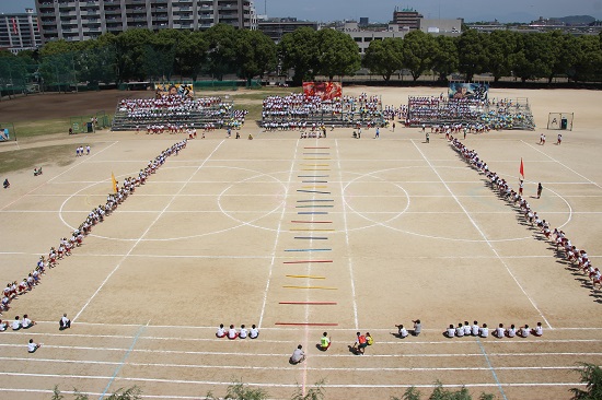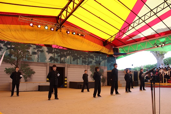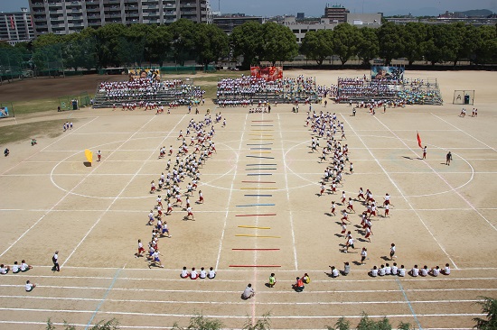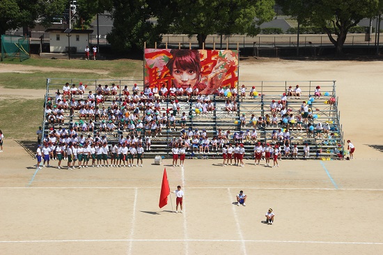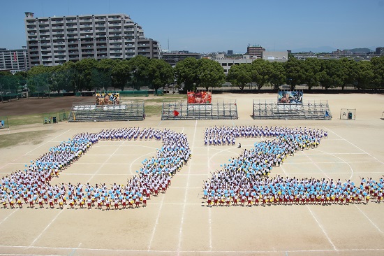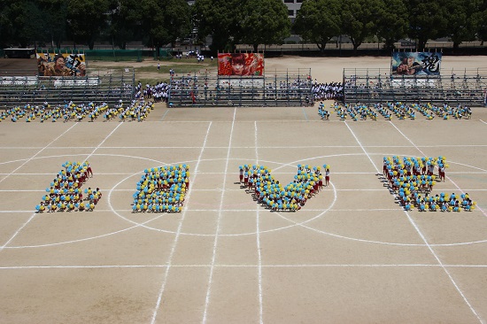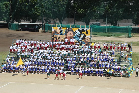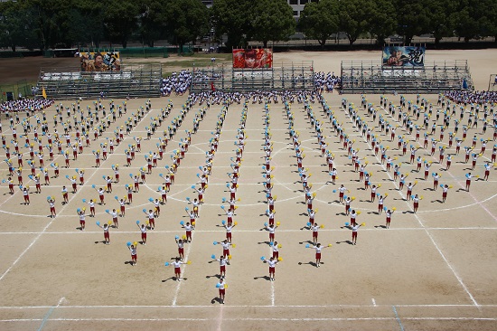グリーンランドおまつり広場に全校生徒が揃うと圧巻です。