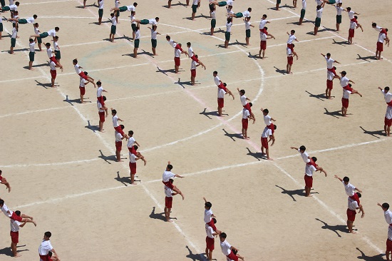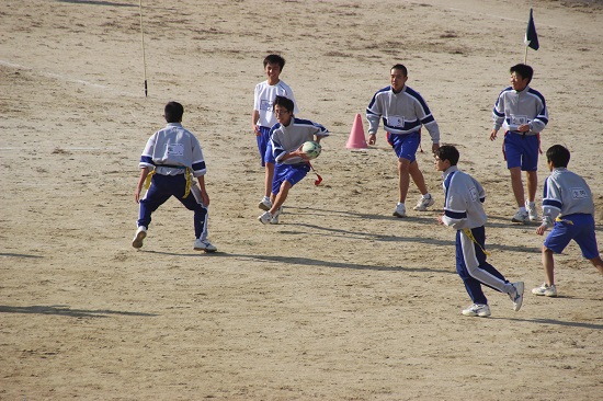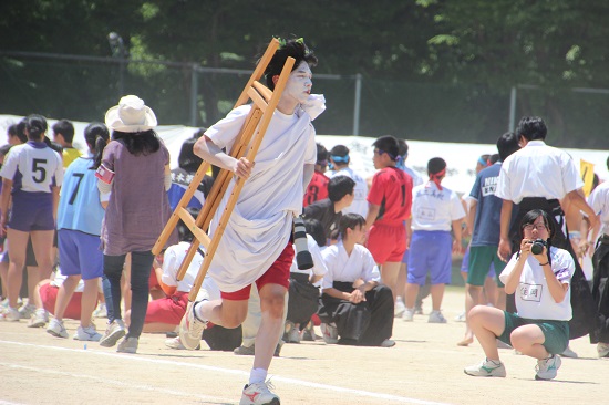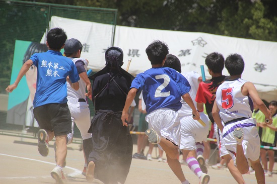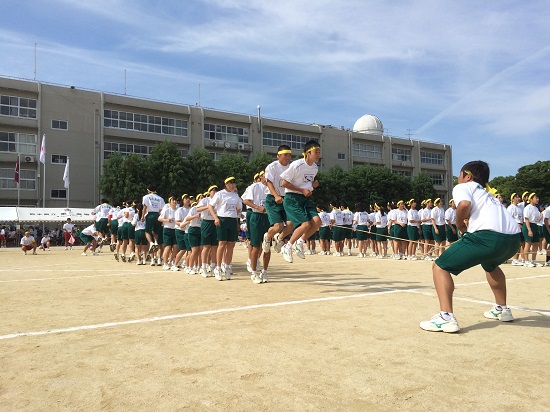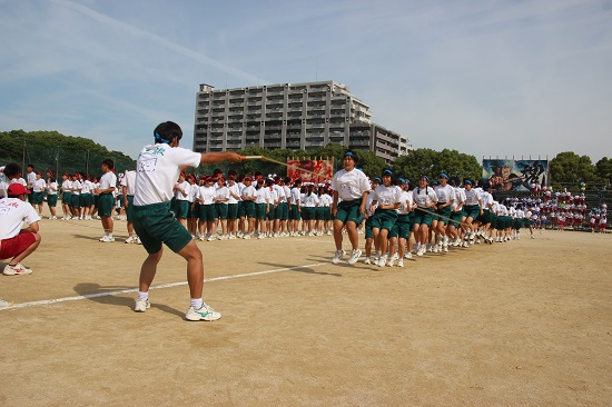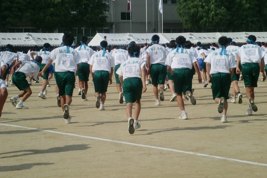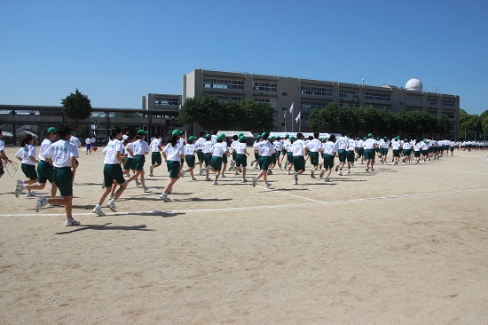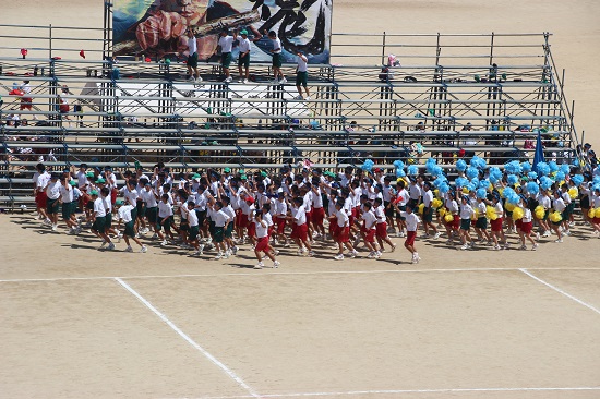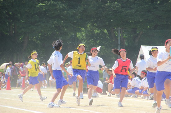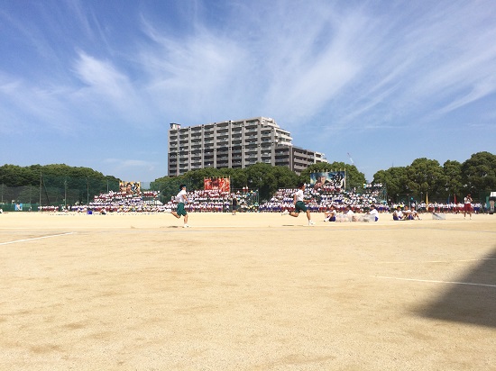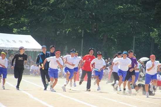 1年生学年競技、クラス対抗リレー。スタートは担任の先生です。